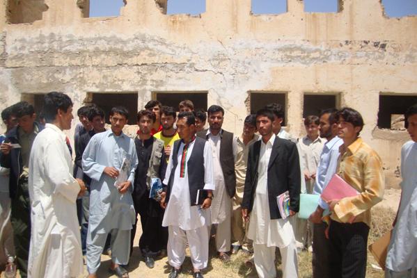 این دانشجویان به فاصله بسیار دور از شهر در یک دشت و در تعمیر ویرانه نظامی که قبلاً فرقه بوده روز را شب و شب را روز میکنند، چون از زنده گی در آنجا نشانه نیست: تشناب ندارند، آب آشامیدنی ندارند، از آب گل آلود دریا استفاده میکنند، اتاق یا چیزی که اتاق نامیده میشود پنجره ندارند. نسل آینده افغانستان از ابتدائیه تا تحصیلات عالی به سرنوشت خود رها شد . همانطور که ما شاگردان مکتب ابتدائیه تخته سنگ را دیدیم که در زیر یک درخت، بالائی یک فرش پلاستیکی درس میخوانند و حتی برای بعضی شان فرش پلاستیکی هم نیست و بالائی یک تخته بزرگ نشسته اند