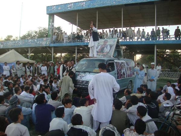 بعد از سخنرانی در پارک، من فکر کردم که کمپاین ریاست جمهوری سخنرانی در پارک شاروالی به پایان رسیده است. اما چنین نبوده بعد از سخنرانی موتر کمپاین ( کرزی کوچ ) در شهر در حال گردش بود که در مقابل دروازه یک سرای متوقف کرد چون اهالی کارت و پوستر تبلغاتی میخواستند. یک جوان از سرای بیرون شد و من را دعوت به نان شب کرد و در ضمن خود را مسؤل شبکه تلویزیونی جهان نما معرفی کرد. قبل از نان شب، کلیپ انتخاباتی من را که بیش از 70 دقیقه است بطور رایگان برای بینینده گان شبکه خود منتشر کرد و بعد از نان شب ( نان و خربوزه ) پیام مستقیم من را در حدود نیم ساعت بطور زنده به بیننده گان شبکه کیبلی خود پخش کرد.