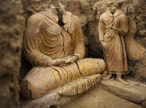 همراه با عکس هایی از بودا در اطراف معدن مس عینک و طالبان افغان در بامیان باستان پس از تخریب بودا