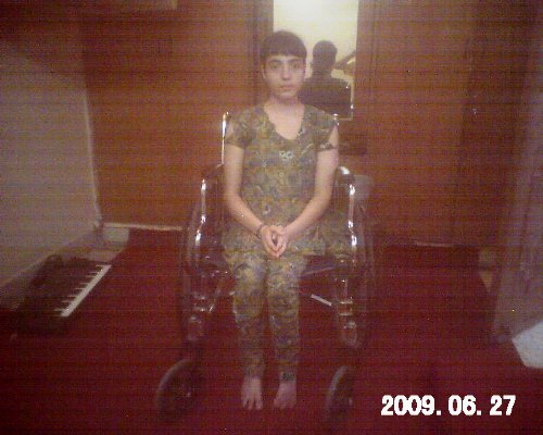 مدینه دخترک معیوبی که 17 سال دارد ،وی به اثر نرسیدن واکسین در هنگام کودکی و یا ممکن کدام دلیل دیگر فلج شده است .