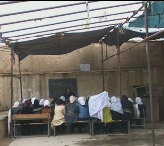 مکاتبی که جامعه ی جهانی و دولت افغانستان ادعای ساختن آن را دارند کجاست. اين يکی از آنان است. لیسه عالی محمد آصف مايل. در کشوری که دختران از سوی طالبان و سایر بنیادگرایان تهديد می شوند که به مکتب نروند، در اينجا آنان در سرما و در فضای باز درس می خوانند.
