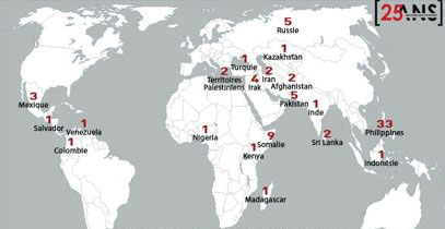 توضیح : گزارشگران بدون مرز برای ارائه این بیلان همچون سالهای گذشته مواردی را برشمرده است که رابطه میان حرفهی قربانی با حادثه برای سازمان یا کاملا و یا با احتمال نزدیک به یقیقمشخص شده است. این آمار مبتنی بر مواردی است که گزارشگران بدون مرز از آنها مطلع شده و مواردی را که قربانیان برای حفظ امنیت خود خواهان افشای آن از سوی خود و یا ما نبوده اند خوداری کرده است.