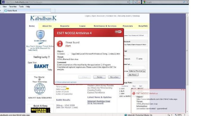 در افغانستان بیشتر کاربران اينترنت از آنتی ويروس های رايگان که پشتیبانی لازم را ندارند و يا آنتی ويروس های غير قانونی استفاده می کنند. بيشتر اين آنتی ويروس ها قادر به شناسایی و از بین بردن اين ويروس و سایر ويروس های خطرناک نيستند.