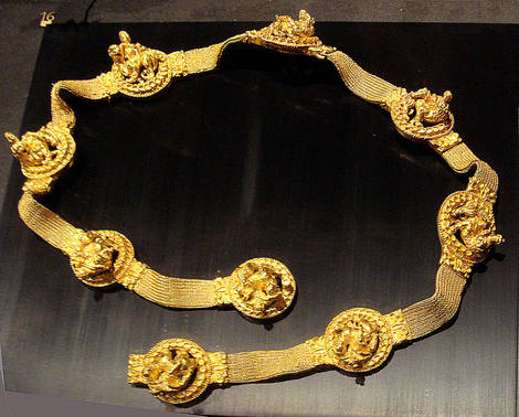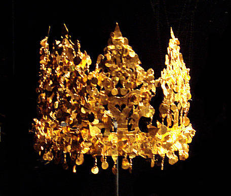 گنجینۀ طلا تیپه مشتمل بر بیشتر از بیست ودوهزار آرایه های طلا، پارچه های زیور، وسکه های بجا مانده از دوره های کوشانیان واشکانیان است که از شش گورمربوط به پنج زن ویک مرد که ثروت سر شاری ازجواهرات گرانبهارا در خود جای داده بودند بدست آمده است. پیشینۀ این گنجینه به سدۀ یکم پیش از میلاد میرسد. آرایه های بدست آمده شامل سکه ها، گردنبند های تزئین شده با سنگ های گرانبها، کمر بند ها ، مدالها وتاج ها میباشد که در سال 1978 میلادی توسط یک گروه باستان شناسان افغانستانی وروسی به سر پرستی ویکتور ساریانیدی کشف گردید.