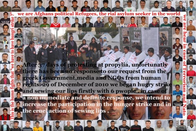 پناهجویان افغانستان در یونان و استرالیا دست به اعتصاب غذا زدند؛ در یونان پناهجویان لبان خود را دوخته اند