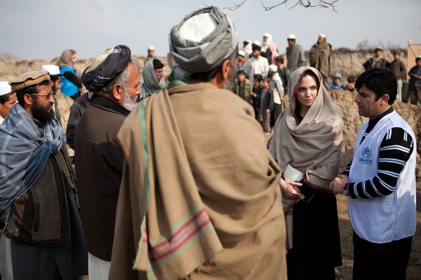 بازیگر شناخته شده سینما خانم آنجلا جولی، به عنوان سفیر حسن نیت سازمان ملل به افغانستان سفر کرده است. او کمک های مالی زیادی تاکنون به پناهجویان در کشورهای مختلف انجام داده است.