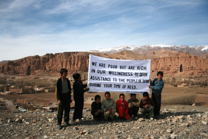 امروز عده ای ازجوانان بامیان به خاطراظهارهمدردی با آسیب دیدگان حادثه زلزله و سونامی اخیرجاپان که منجربه کشته شدن هزاران نفرگردیده است، بر فرازتپه چونی بامیان تجمع کردند.