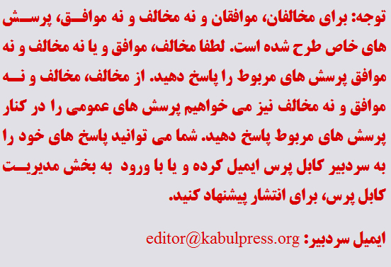 این نظرسنجی را می توانید در پایین تمام مقالات منتشر شده در کابل پرس بیابید.