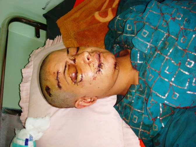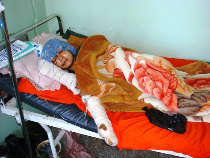 داکتر محمد شعیب حامدی، داکتر معالج این زن و از مسئولان بخش جراحی اعصاب شفاخانه هرات می گوید: این زن که "فاطمه"نام دارد و ساکن شهر زرنج ولایت نیمروز است، پیش از انتقال به شفاخانه هرات در شفاخانه محلی شهر زرنج مورد تدوای فوری قرار گرفته و زخم هایش پانسمان و دوخته شده بود وهم اکنون در بخش جراحی عصبی این شفاخانه بستری است.