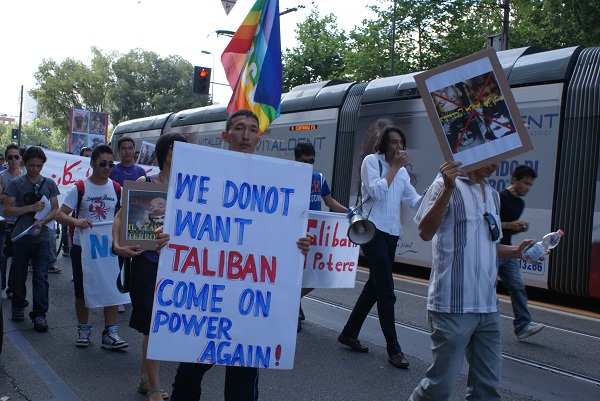 تظاهرات کنندگان با حمل شعارها وپلاکاردهای گوناگون به سه زبان، ایتالیایی، فارسی وانگلیسی، فاصله چند کیلومتری را طی نموده علیه طالبان کوچی وبنیاد گران مذهبی شعارداده ازجامعه جهانی خواستند تا محو کامل بنیاد گرایی درافغانستان این کشور را تنها رها نکنند.