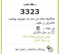 وقتی که اطمينان پيدا کرديد که همه چيز به دلخواهتان است، کافی ست که روی منوی " برای ارزیابی پيشنهاد شده"، سمت راست صفحه زير شماره مقاله کليک کرده و آن را تاييد کنيد. دقت داشته باشید چنانچه نوشته ی خود را برای انتشار پيشنهاد نکنيد، نوشته همچنان روی ميز کار شما در حال نگارش باقی می ماند. اين به اين معناست که تا زمانی که آن را برای انتشار پيشنهاد نکرده ايد، در کابل پرس نشر نمی شود. (مهم)