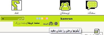 در رديف دوم شما ابزارهای ديگر را خواهيد ديد که شامل تمام سايت، شبکه نوردی سريع، جستجو، روزشمار، پيک شخصی و پيگيری فعاليت سايت می باشد.