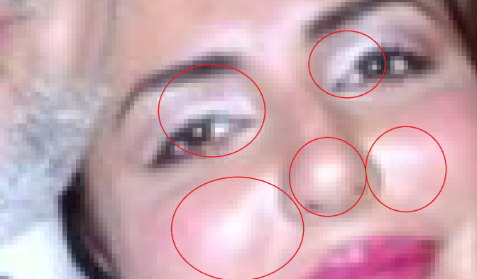 هرگاه ما نقاط که انعکاس دهنده ی نور هستند، بزرگتر کنیم، در می یابیم که اینها ساختگی و غیرطبیعی می باشند. لطفآ به تصویر زیر دقت کنید: