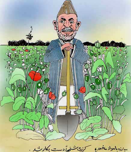 افغانستان بزرگترين توليد کننده ی مواد مخدر که بالاترين مقامات دولتی در کشت و قاچاق آن دست دارند، آيا با طرح ها موفق خواهد شد که مواد مخدر را کنار بگذارد؟ تاکنون طرح های مختلفی از سوی دولت و جامعه ی جهانی روی دست گرفته شده که هميشه با شکست مواجه بوده است. حتا برای مبارزه با مواد مخدر يک وزارت نيز ايجاد کردند که برای مدت طولانی آقای حبيب الله قادری وزير آن بود و پس از مصرف ميليون ها دالر به دستاورد جالبی دست يافتند و آن افزايش بيشتر توليد و قاچاق مواد مخدر بود. آقای قادری ناچار شد به سبب بی لياقتی از سمت خود استعفا کند و بيماری را پيش کشيد. اين در حالی ست که اين بيمار به يک سمت ديگر به عنوان ديپلمات در کانادا گمارده شد. به همين شکل سرپرستان و وزير جديد نيز هيچ گام مثبتی برای مبارزه با مواد مخدر برنداشته و در عوض کاهش توليد و قاچاق، توليد و قاچاق افزايش چشمگيری يافته است. اکنون نيز با فرارسيدن تابستان، توليدات امسال مواد مخدر آماده ی برداشت و قاچاق می شوند. ميان توليد و قاچاق مواد مخدر در افغانستان و جنگ با نيروهای طالبان هميشه پيوندی مهم بوده است. زمانی که توليد و قاچاق روی دست گرفته می شود، نيروهای بين المللی و پوليس و اردوی ملی افغانستان مناطق مهم و کليدی توليد و قاچاق را به نيروهای طالبان واگذار می کنند و در فصل سرما دوباره بيرق جمهوری اسلامی افغانستان را به اهتزار در می آورند.