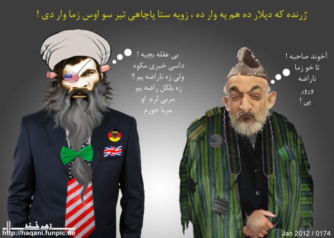 کرزی زوالش را باید مدیون دو خطای بزرگ و نابخشودنی خودش بداند ، اول نا آگاهی ازین واقعیت که در پاکستان برعلاوه مدارس مداری گری و چشم بندی که درآن جنگ مار و موش خرما تدریس میگردد مدارس عالی دیگری هم وجود دارد که در آنها جنگ مار و موش خرما به جنگ اسلام و کفر ارتقا یافته و بجای چف و پف و انتر و منتر از آیات قرآنی و احادیث نبوی برای بدام انداختن عوام کالانعام استفاده می شود و فارغ التحصیلان این مدارس نظر به طول ریش و میزان آمادگی خیانت شان از طرف قدرت های استعماری جهان به قیمت گزاف خریداری شده و برای اهداف شوم شان استعمال میگردند.
